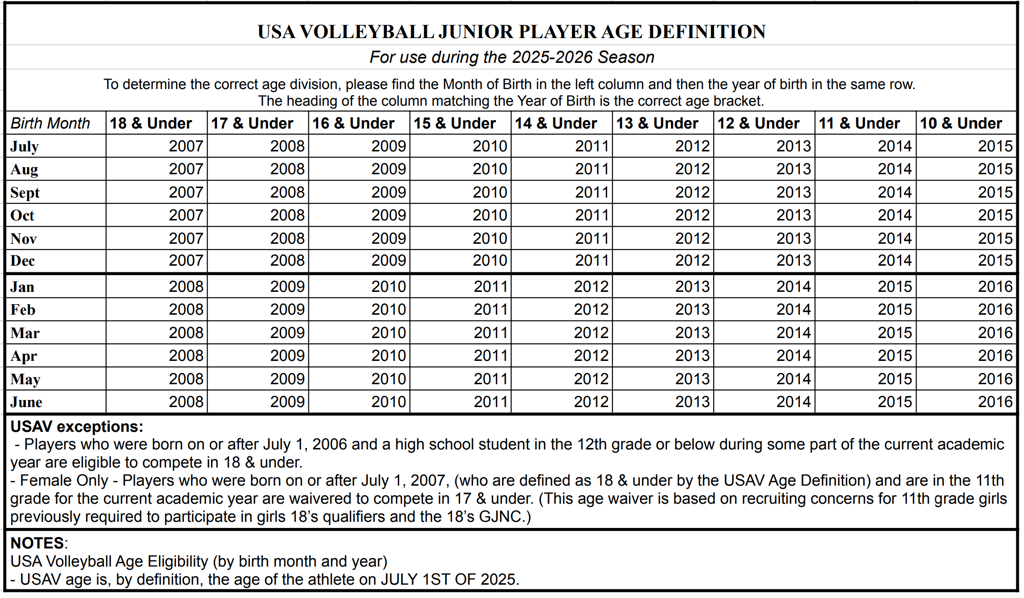 1st PRACTICES (12 & Under, 13-14) Open Gym Sunday 11/9 6-7:30 with information after (free, optional). Practice begins Sunday 11/16 4-6pm. At the 12-13-14 levels we train numerous rosters and teams will be fluid as players gain experience. No cuts.